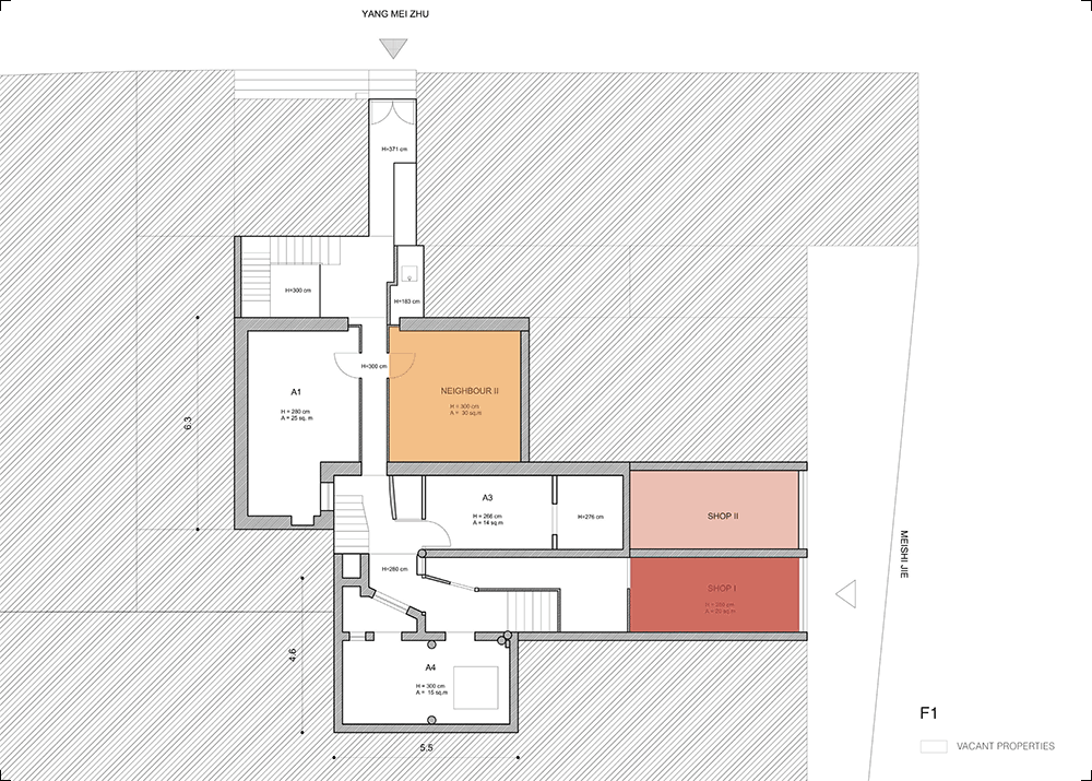 Our plot consists of a series of disconnected volumes on multiple levels arranged around two little courtyards, shared by different tenants. The design was initially focused only on the vacant volumes but, given the heavy fragmentation of the properties and the serious structural pathologies of some buildings, soon it became clear that only operating on the whole courtyard, we could intervene effectively. The renovation would then have a much stronger impact that could eventually benefit both the current and the future tenants.